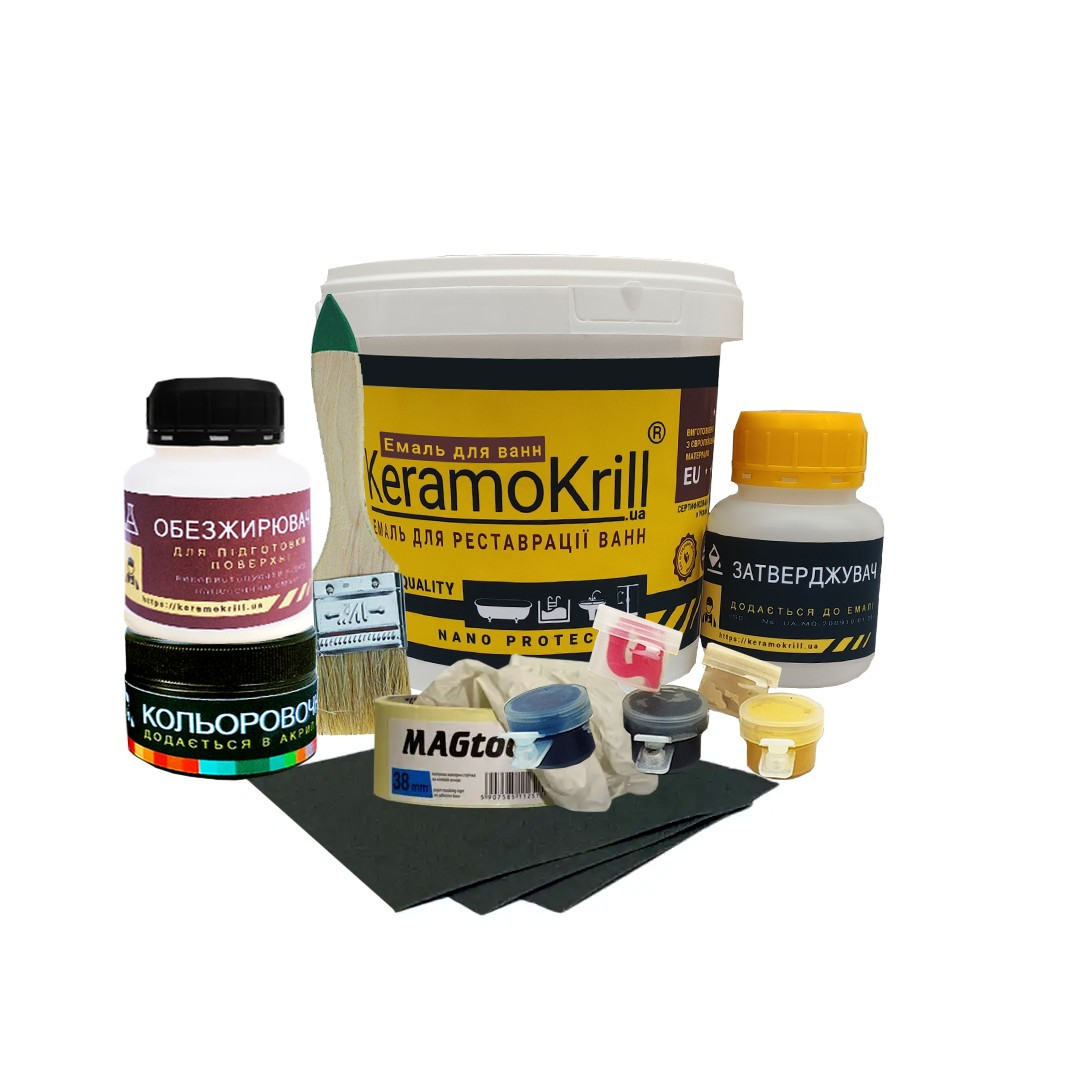 KeramoKrill Nano Protection System це двокомпонентна емаль для реставрації ванн за технологією «Емалювання». На поверхню ванни емаль наноситься пензлем або валиком. Так як для роботи пензлем або валиком не потрібно особливих професійних навичок, відреставрувати ванну емаллю лактики своїми руками може практично будь-яка людина.